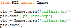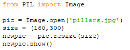 Our “pillars.jpg” file has a high resolution. We will resize it to a smaller resolution using the code below.